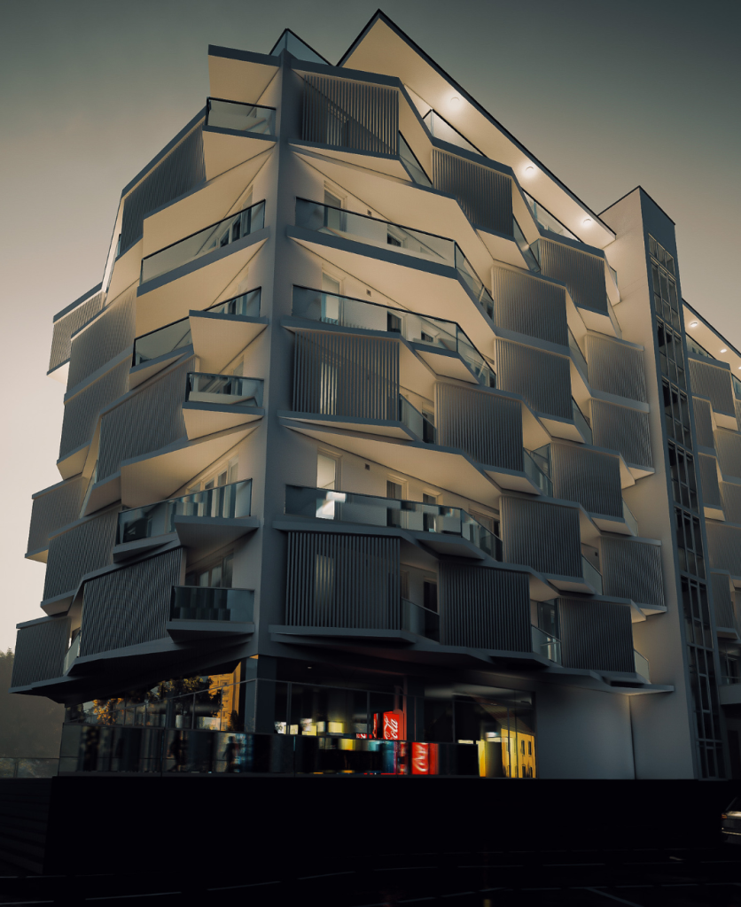 Arhitectura proiectului se remarcă prin volumetrii elegante, linii clare și fațade expresive, completate de accente vitrate în zona caselor de scară panoramice, ce adaugă un plus de lumină, vizibilitate și transparență. Noua dezvoltare ridică standardele estetice ale cartierului, contribuind la regenerarea vizuală și funcțională a zonei.