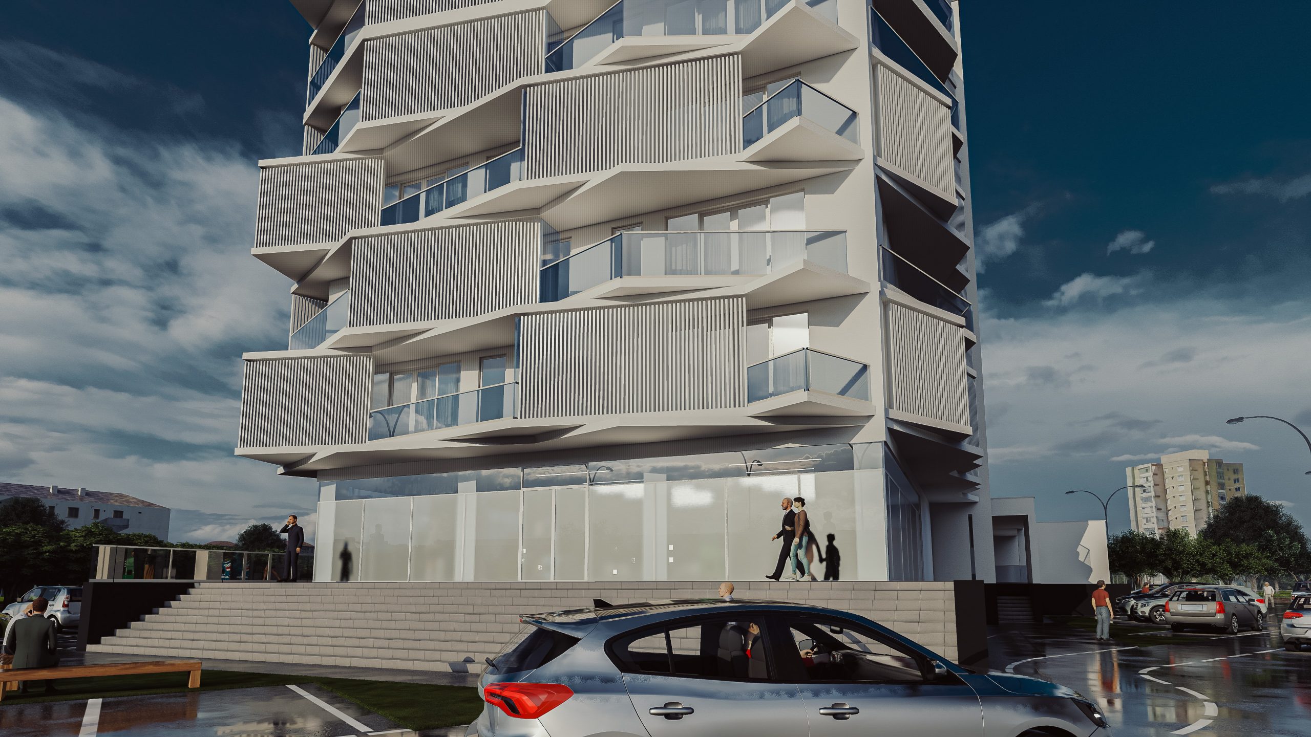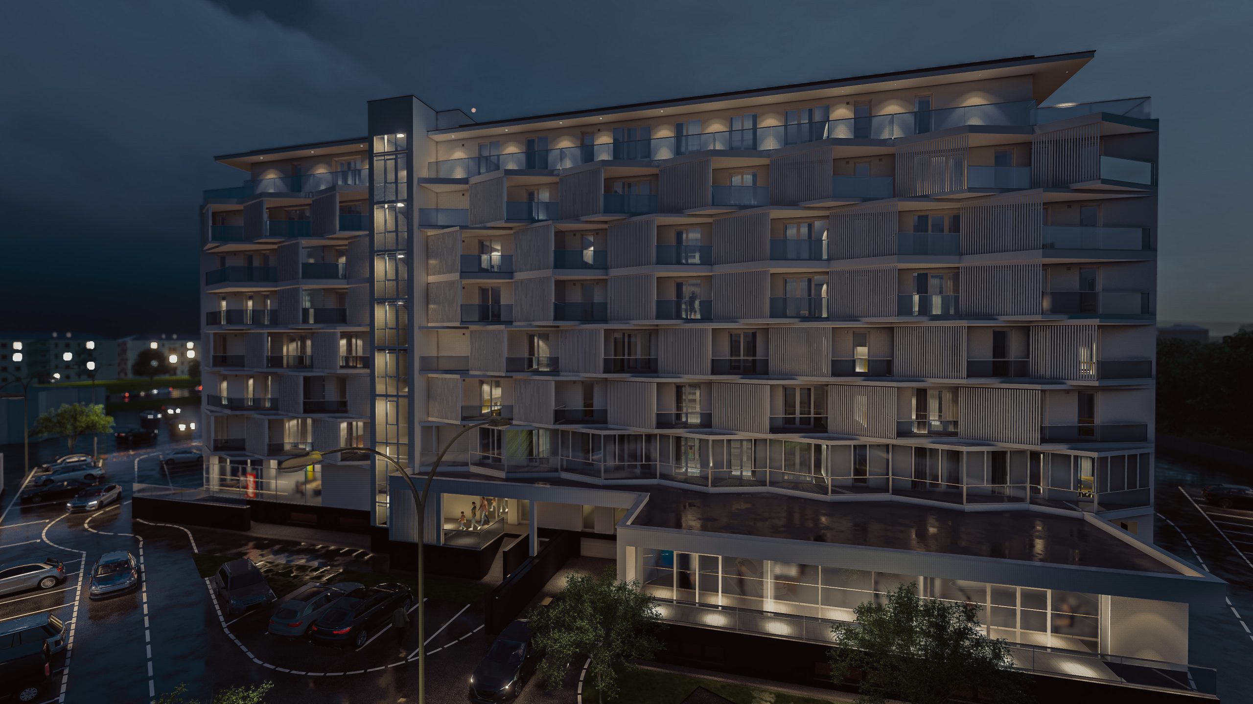 Arhitectura proiectului se remarcă prin volumetrii elegante, linii clare și fațade expresive, completate de accente vitrate în zona caselor de scară panoramice, ce adaugă un plus de lumină, vizibilitate și transparență. Noua dezvoltare ridică standardele estetice ale cartierului, contribuind la regenerarea vizuală și funcțională a zonei.